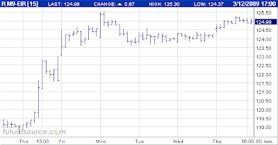 Woah, stop right there! Let's have a look at how the benchmark ten year Long Gilt future shot up in price since QE was announced in earnest last Thursday morning (click to enlarge):